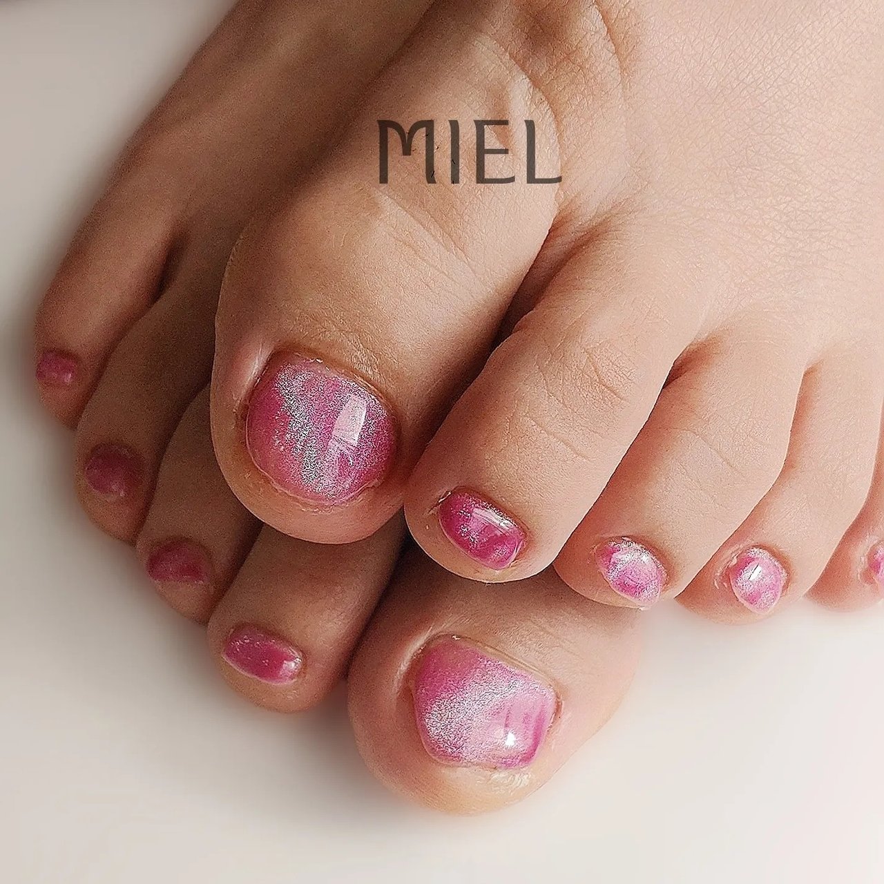 フット シンプル ワンカラー ピンク ジェルネイル Miel 清水のネイルデザイン No ネイルブック